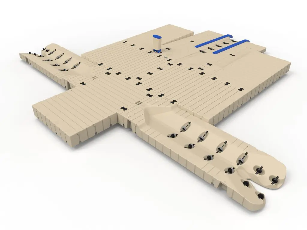 Legg trygt til og sjøsett båten og vannscooteren med et tilpasset EZ Dock-system. Med en båtport og to integrerte vannscooterporter kan du skape det perfekte oppsettet med vår modulære design. Rask og enkel installasjon.