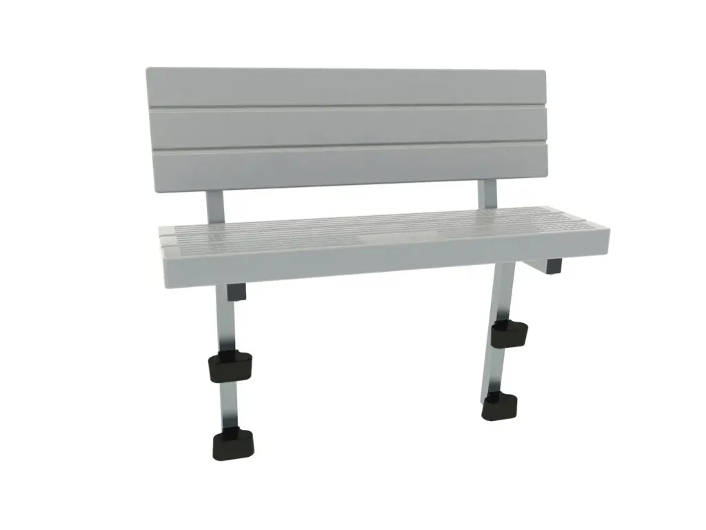 Polyetylenbenk uten armlener. Installeres langs en hvilken som helst åpen 3 lommespenn på EZ Dock Produkter.